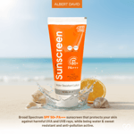 Albert David Sunscreen SPF 50+ PA+++ Lotion offers strong protection against harmful UVA and UVB rays. Its broad-spectrum formula helps prevent sunburn, premature skin aging, and damage caused by sun exposure. Enriched with moisturizing agents and antioxidants, it keeps skin hydrated and nourished while shielding it from harmful effects. Suitable for daily use on all skin types, its lightweight and non-greasy lotion texture absorbs quickly, making it ideal for outdoor activities and everyday wear to maintain healthy, protected skin. It also supports effective anti aging home remedies by protecting skin from sun damage.