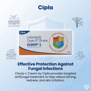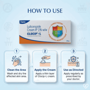 Clocip L 1% Cream is a trusted antifungal medication used to treat a wide range of fungal skin infections such as ringworm, athlete’s foot, jock itch, and yeast infections. It contains Luliconazole which works by stopping the growth of fungus and relieving common symptoms like itching, redness, scaling, and discomfort. With regular use as prescribed, Clocip L Cream helps clear the infection effectively while soothing irritated skin, making it a reliable choice for restoring healthy, infection-free skin.
