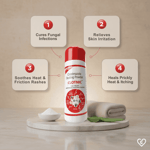 - Soothes heat and friction rashes.