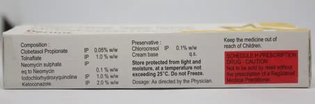 Ketoconazole can prevent erogosterol synthesis in the cholesterol through increasing memebrane fludity and prevent fungal growth. Clioquinol (Iodochlorhydroxyquin) is a broad spectrum antibacterial with antifungal properties. Tolnaftate can prevent the ergosterol biosynthesis through inhibiting squalence epoxidase. Neomycin can work through binding to 30S subunit of bacterial ribosomes that can prevent the synthesis of protein and may kills bacteria. Clobetasol can prevent Psoriasis and Cutaneous Atrophy due to Corticosteroids.