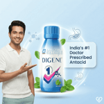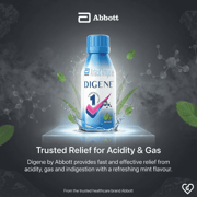 Acidity occurs when the stomach produces excess acid, leading to heartburn, chest discomfort, and sour taste. Gas forms due to improper digestion, overeating, or swallowing air, causing bloating and abdominal pressure. Indigestion is a combination of discomfort, fullness, and nausea after eating. Digene Acidity & Gas Relief Gel helps manage these symptoms effectively by neutralising acid and relieving gas.