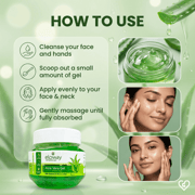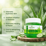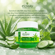 Eloway Aloe Vera Moisturizing Gel 100 gm is a natural skincare product enriched with pure aloe vera and cooling cucumber extracts that deeply hydrate and nourish the skin, leaving it soft and supple. This gel effectively soothes sunburn, redness, and skin irritation, reducing inflammation and promoting faster healing. Its lightweight, non-greasy formula absorbs quickly, making it suitable for all skin types, including sensitive and acne-prone skin. Regular use helps maintain moisture balance, improves skin texture, and adds a natural glow for a healthy, refreshed appearance.