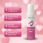 Kelyn Intense Love Women Body Spray 150ml offers a captivating, long-lasting fragrance that uplifts spirit and confidence. The gentle yet effective formula maintains freshness, neutralizes odor, and is suitable for everyday use across all skin types.