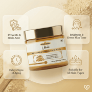Acne and oily skin result from excess sebum and clogged pores. Multani Mitti effectively absorbs and cleanses excess oils, while Sandalwood fades pigmentation and heals scars with its anti-inflammatory and skin-regenerating properties.