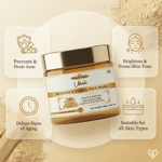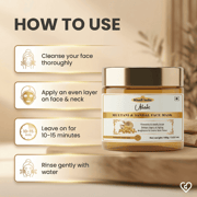 Multani Mitti in the mask absorbs excess oil, impurities, and unclogs pores for a deep cleansing effect. Sandalwood soothes inflammation, calms sensitive skin, and offers a cooling sensation, helping to reduce redness. The combination exfoliates dead skin cells and nourishes with natural minerals, promoting a smoother texture. Regular application helps prevent acne, refines pores, and enhances skin tone for visibly healthier skin.