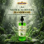 Khadi India Utkrisht Neem & Aloe Vera Handwash 500ml is a herbal liquid handwash specially formulated for deep cleansing and protection. It combines the natural antibacterial properties of neem with the soothing effects of aloe vera to keep hands germ-free and moisturized. This gentle formula effectively removes dirt and impurities without harsh chemicals, making it ideal for daily use. The blend helps maintain skin softness and prevents dryness even with frequent washing. This handwash supports hygiene while caring for sensitive skin, offering a refreshing and safe hand cleaning experience for all ages.