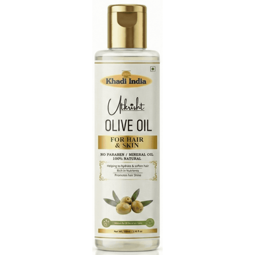 Khadi India Utkrisht Olive Oil 100ml is a pure, natural solution for healthy hair, radiant skin, and strong nails. Enriched with Vitamin E and antioxidants, this lightweight oil deeply hydrates, strengthens, and protects against damage. Safe for all skin and hair types, it offers multiple benefits without harmful chemicals. Ideal for daily self-care, it stands as a must-have herbal beauty essential.