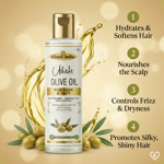 | Composition | Pure Olive Oil, rich in Vitamin E, antioxidants, essential fatty acids |