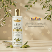 Unlike regular commercial oils filled with mineral oil and parabens, this herbal olive oil is crafted with purity and authenticity, making it a safe choice for daily self-care. Olive oil is rich in Vitamin E, essential fatty acids, and antioxidants that protect skin from dryness, delay premature aging, and strengthen hair roots for better growth. Its lightweight, non-sticky texture ensures quick absorption, providing long-lasting hydration without greasiness. Khadi India Utkrisht Olive Oil is suitable for all skin types and hair textures. Regular use ensures stronger, shinier hair, supple skin, and a healthy scalp.