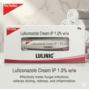 Lulinic 1% Cream 30gm containing luliconazole is a trusted topical antifungal treatment for common fungal skin infections like ringworm, athlete’s foot, and jock itch. It works by damaging the fungal cell membrane, stopping fungal growth and relieving symptoms like itching, redness, and scaling. Easy to apply and generally well tolerated, it provides effective relief when used as prescribed. Maintaining hygiene and completing the full course are essential to prevent recurrence.