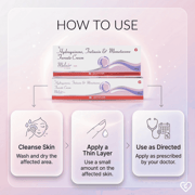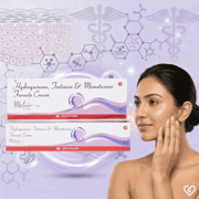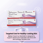 Melnor Cream combines Hydroquinone to block melanin production, Mometasone Furoate to reduce skin inflammation, and Tretinoin to speed up skin cell renewal. This combination effectively lightens pigmentation, soothes irritation, and promotes healthier skin appearance. The cream targets melasma and dark spots, providing clear and more uniform skin tone with continuous use and sun protection.