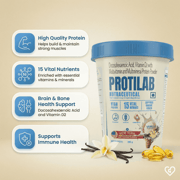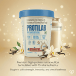 Protilab Vanilla Flavour Protein Powder 200gm is a complete nutritional supplement that combines high-quality protein with DHA, Vitamin D2, and essential multivitamins and multiminerals. It supports muscle strength, energy, immunity, bone health, and brain function. With a smooth vanilla flavour, it is easy to consume daily and helps fill common nutritional gaps in modern diets.